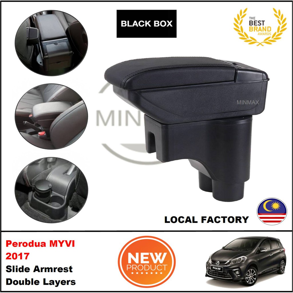 Black Perodua Myvi Slide Armrest Car Arm Rest Box Center via shopee.com.my